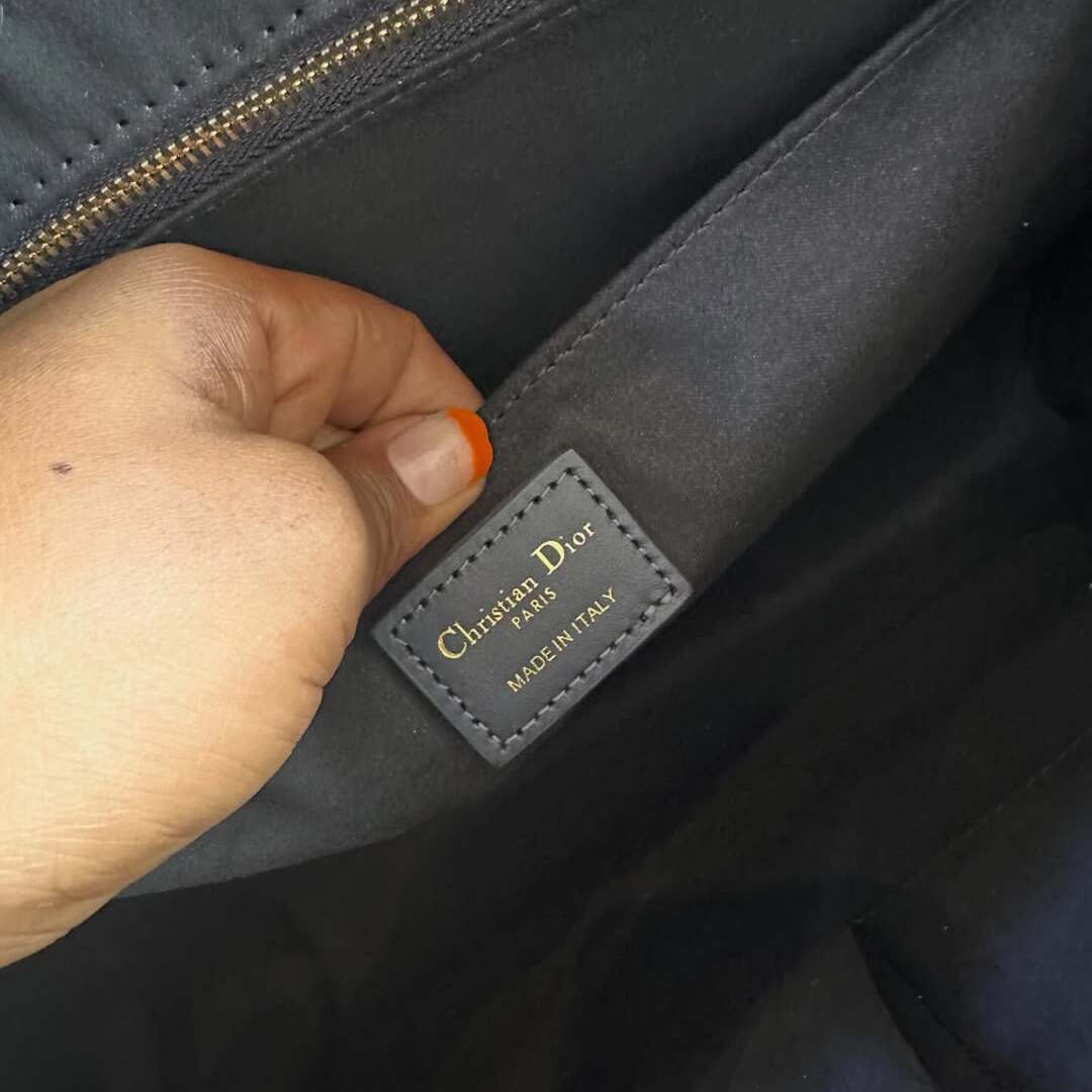 Signature Branding: Adorned with the bold “CHRISTIAN DIOR PARIS” signature across the front, framed by horizontal bands that define the bag’s architectural silhouette.