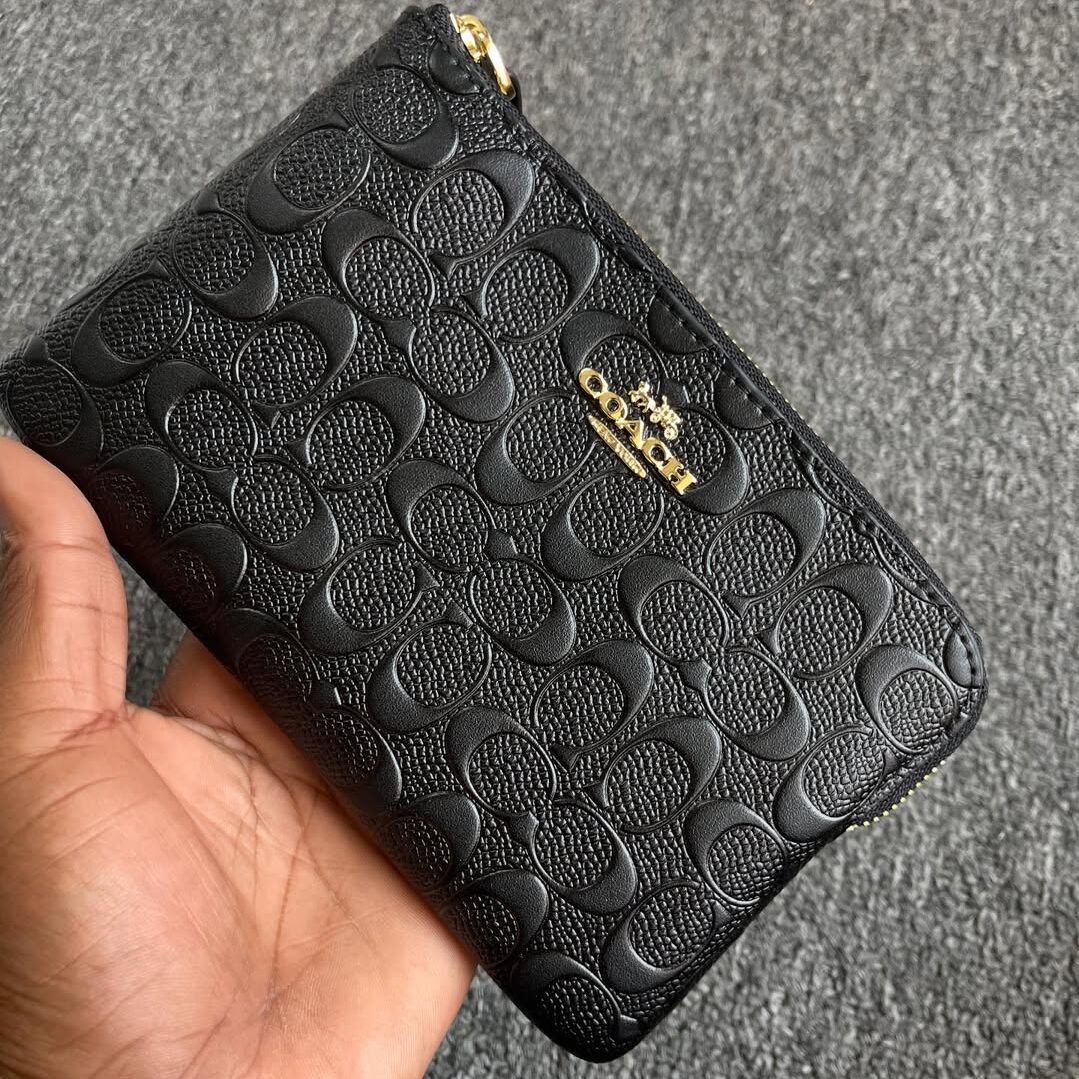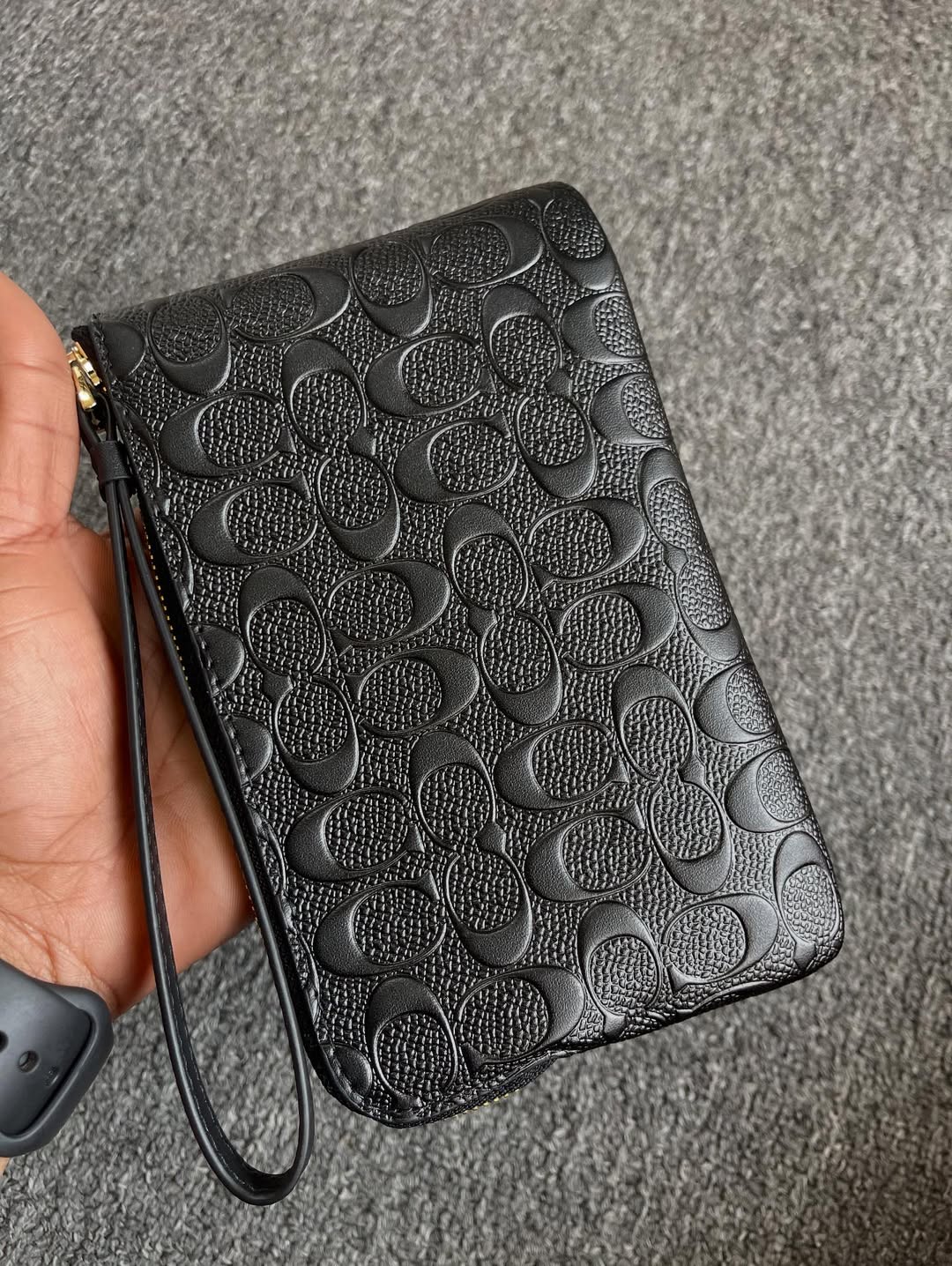 Coach Boxed Corner Zip Wristlet Embossed is a stylish, compact accessory crafted from embossed leather. Featuring a zip-around closure and a convenient wrist strap, it’s perfect for carrying essentials on the go.