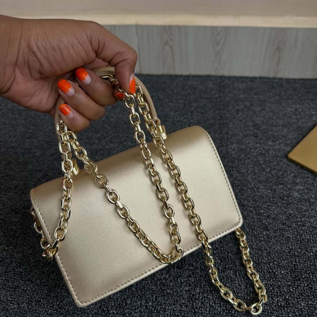 Versatile Chain-Link Strap: Equipped with a sliding, gold-tone chain strap that allows for multiple carrying options: long as a crossbody or doubled up for a polished shoulder look.