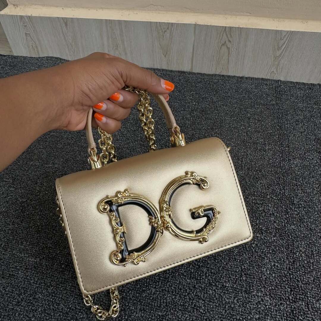 Baroque-Style DG Logo: The front flap is dominated by an ornate, 3D Baroque-inspired “DG” logo in gold-plated metal with tonal enamel detailing.