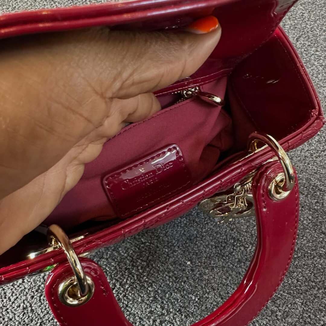 Lady Dior Micro in Cherry Red Patent Leather
