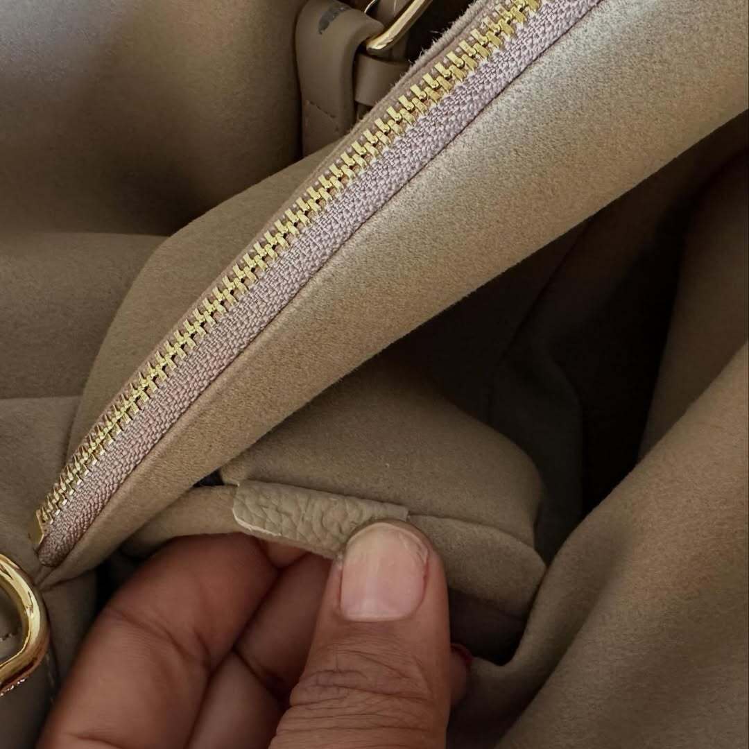 Details: Adorned with a matching leather luggage tag and subtle gold-tone hardware that perfectly enhances the bag’s warm neutral tones.