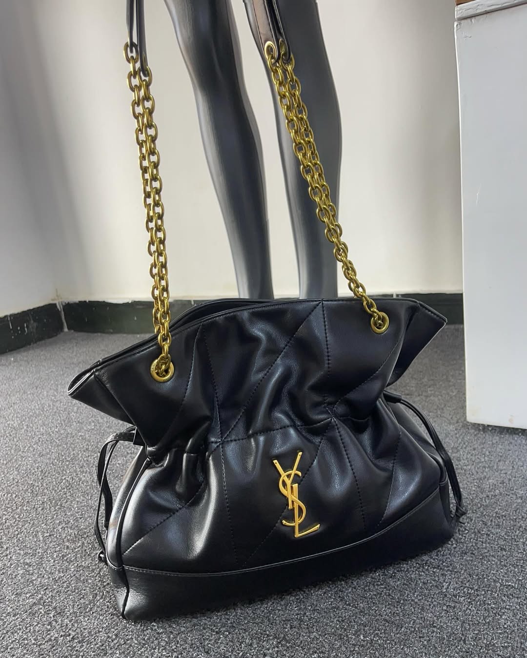 Saint Laurent Jamie 4.3 Tote Bag is a sophisticated, oversized tote crafted in quilted lambskin or suede with the iconic YSL monogram. Featuring a flap closure, sliding chain strap, and spacious interior, it blends timeless elegance with everyday functionality.